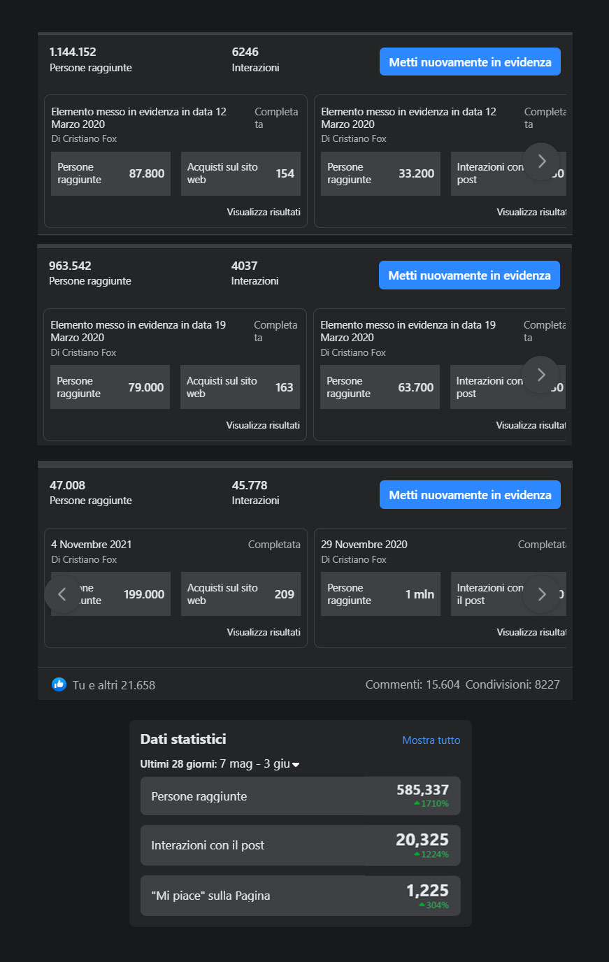 Negli anni ho creato e gestito molte pagine partendo da zero arrivando anche a oltre 100 mila follower che hanno creato un pubblico perfetto per il business richiesto. Il numero di like di una pagina attualmente è insignificante in quanto è necessaria sempre la sponsorizzazione però risulta una buona base per avere almeno un pubblico di persone interessate al servizio.